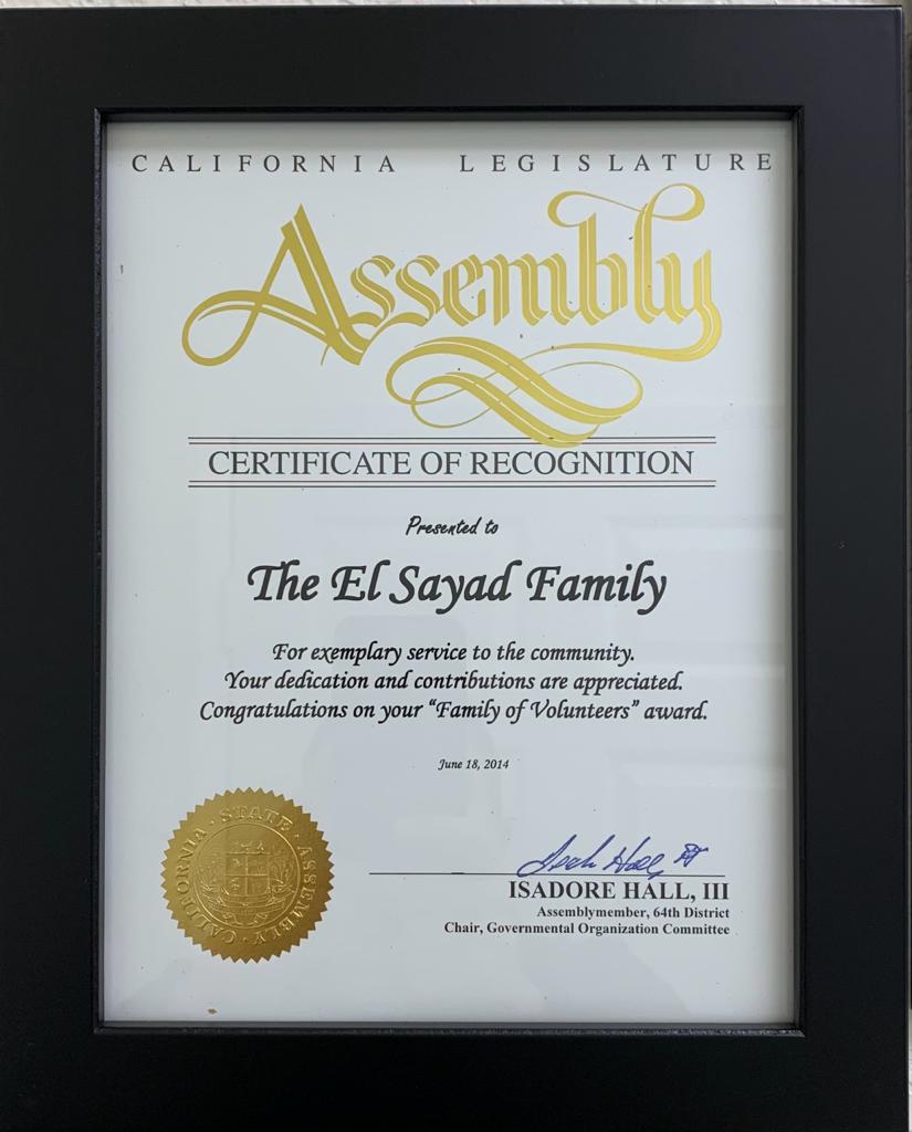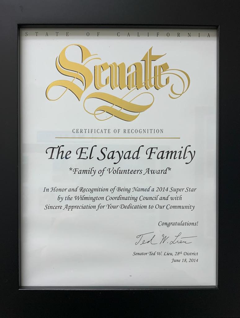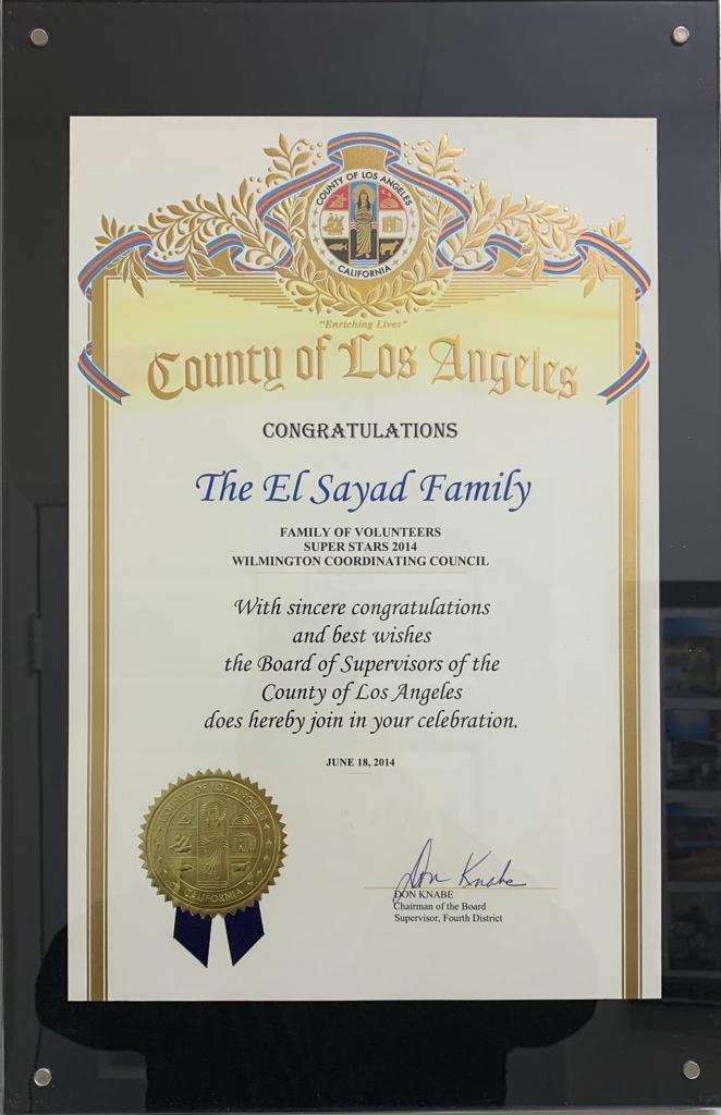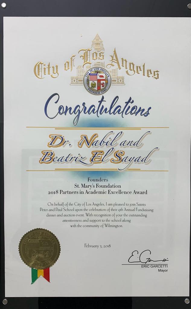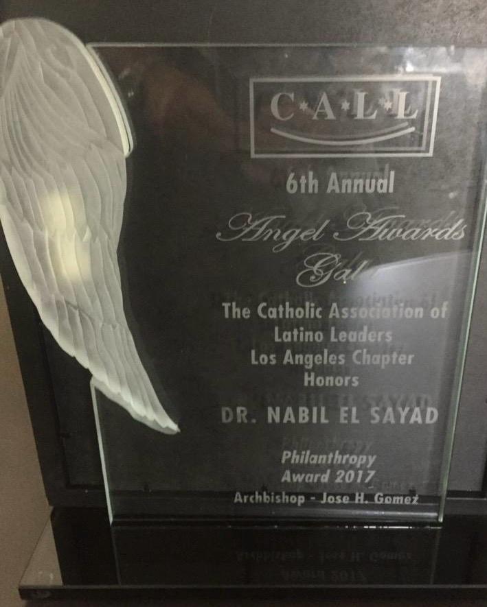 Dr. El Sayad received The Angel Award by the Catholic Association of Latino leaders by the Archbishop Jose H. Gomez for the Philanthropy Award un 2017